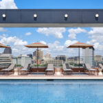 A blend of historical charm and modern elegance, the new Kimpton Santo San Antonio – Riverwalk is part new build and part adaptive reuse. San Antonio’s very first Kimpton stays true to the soulful essence and traditional architecture that have long characterized this romantic southwestern city while adding a twist of contemporary luxuries and bold design. It’s all set on a storied property that melds past and present with standout features like a renovated 19th-century schoolhouse, an outdoor courtyard with century-old live oak trees, and the tallest luxury open-air rooftop in the city.