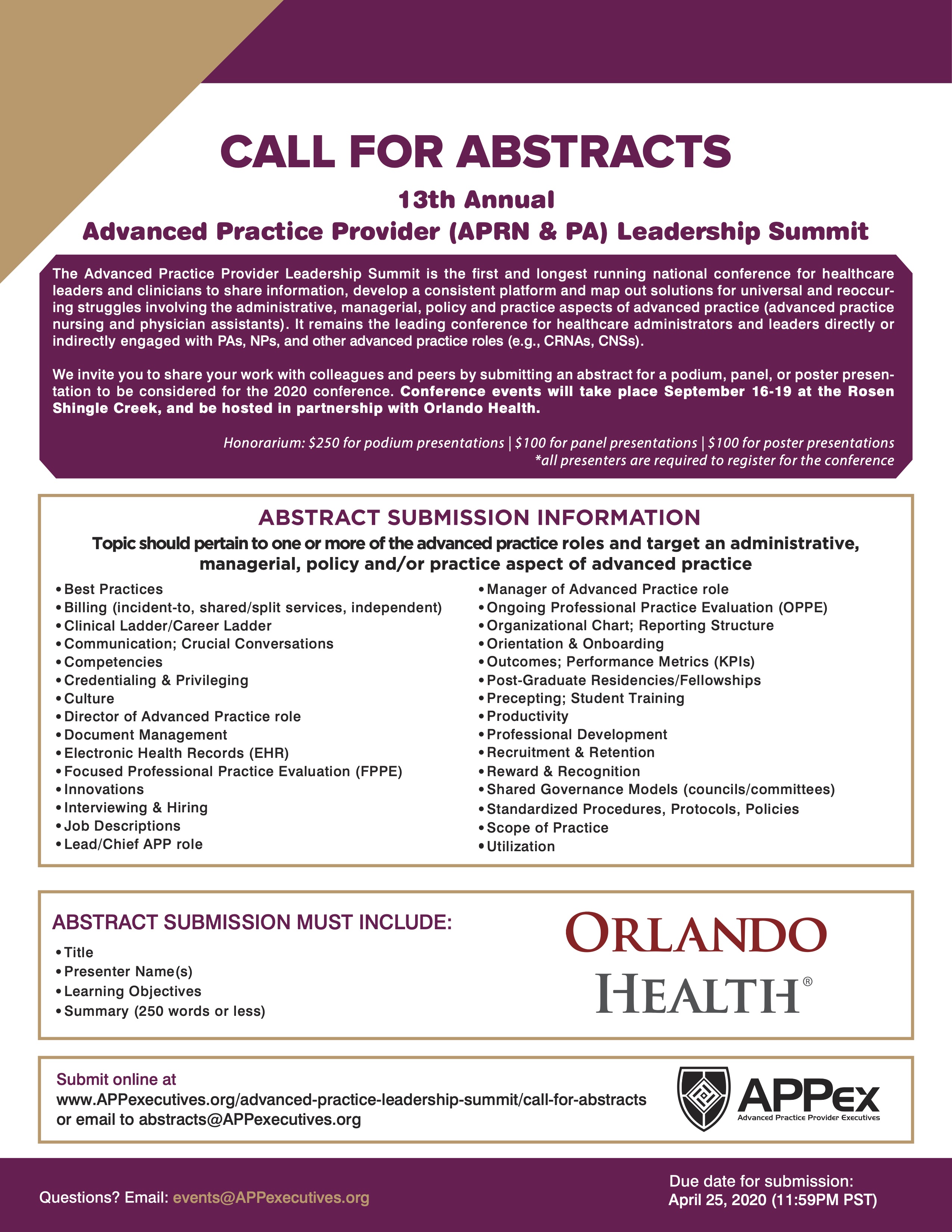 *note: topics must directly or indirectly involve one or more of the advanced practice roles and target an administrative, managerial, policy and/or practice aspect of advanced practice.