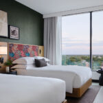 A blend of historical charm and modern elegance, the new Kimpton Santo San Antonio – Riverwalk is part new build and part adaptive reuse. San Antonio’s very first Kimpton stays true to the soulful essence and traditional architecture that have long characterized this romantic southwestern city while adding a twist of contemporary luxuries and bold design. It’s all set on a storied property that melds past and present with standout features like a renovated 19th-century schoolhouse, an outdoor courtyard with century-old live oak trees, and the tallest luxury open-air rooftop in the city.