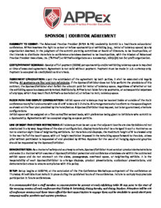Sponsors of APPex also receive a number of direct and indirect benefits: improved networking and connectivity into a major arena of healthcare via advanced practice and healthcare leadership, enhanced credibility and relationships amongst the advanced practice community, highly targeted marketing opportunities, media exposure, heightened brand awareness & recognition, potential for new sales and new business partnerships, etc.