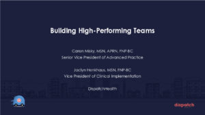 Developing teams is much more than getting a group of people together that perform a similar role or have a similar goal. In order for teams to be successful and perform at a high level, there needs to be a thoughtful approach to creating and supporting the team. This presentation will provide a framework for creating teams, strategies for developing a healthy team dynamic, and highlight the characteristics and attributes of successful, high-performing teams. Leadership plays a key role in the success of the team and ultimately in the impact the team's work has on the individual and the organization.